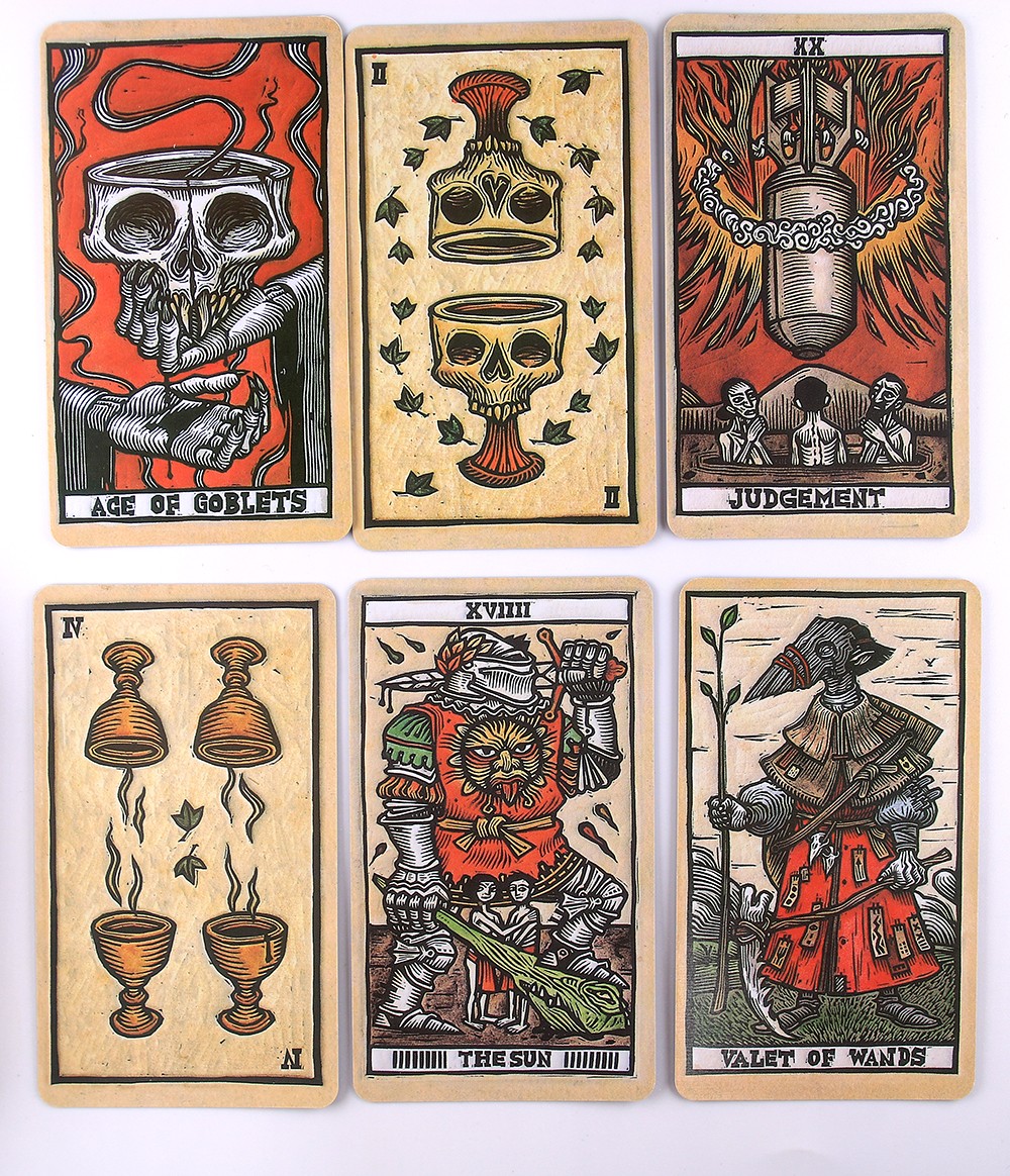 Desde el macabro mundo de Enrique del Toro, viene una deliciosa toma trenzada en una tradicional baraja de tarot de setenta y ocho cartas. Diseñada e ilustrada por Tomas Hijo, esta baraja presenta una suntuosa obra de arte original inspirada en los temas, imágenes y personajes de algunas de las películas más populares del Toro, incluyendo.Laberinto de Pan,Pico carmesí, YForma de agua. Con arcana principal y menor, el set también viene con una guía útil que explica el significado de cada tarjeta, así como una simple introducción a la creación y los extensos de lectura.