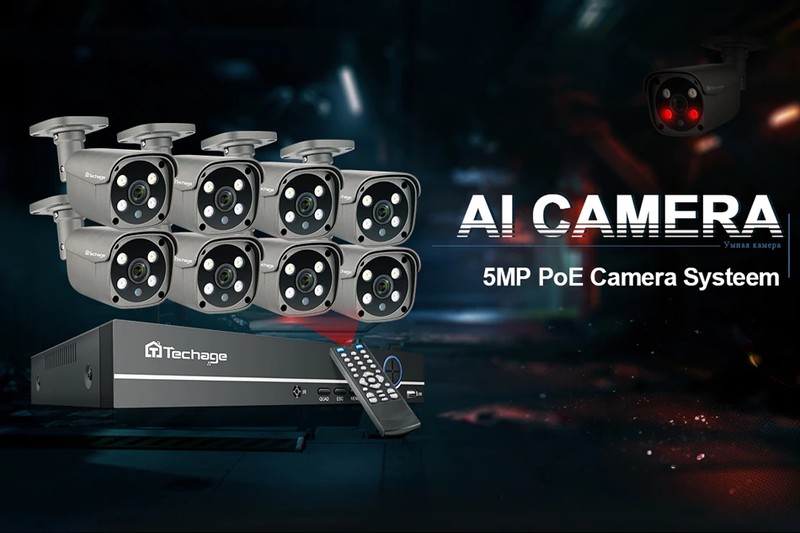 1. Nuestro nuevoSistema de cámara 5MP POE. Diseño NVR de 8 canales, soporte para conectar hasta 8 piezas de cámaras, puede comprar cámaras IP POE Techage para expandir su sistema de CCTV.