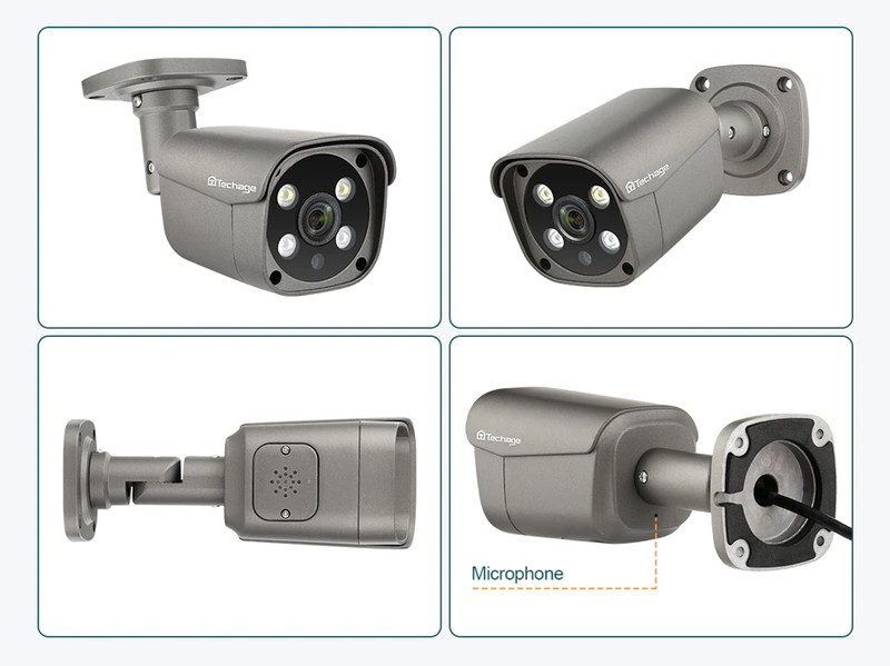 Techage-Sistema De Cámaras De Seguridad, Kit De Videovigilancia Ip, Nvr 8 Canales 5Mp Hd Poe Audio Bidireccional Detección Facial Ia, Para Exteriores