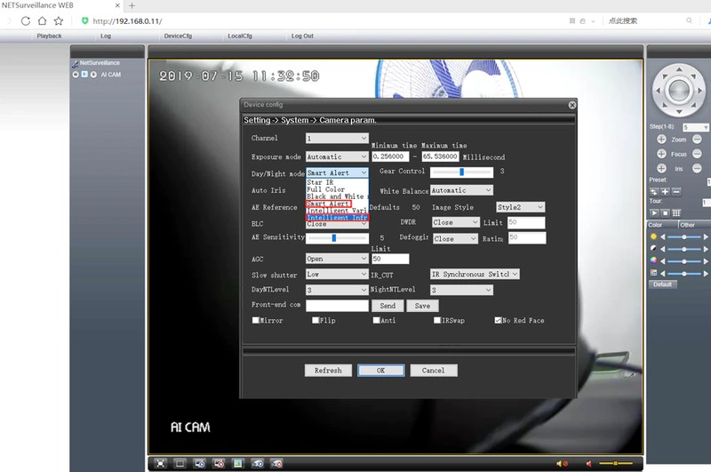 Solo hay 2 opciones (otras opciones no funcionan): Modelo "Alerta inteligente" e "infrarrojo inteligente"