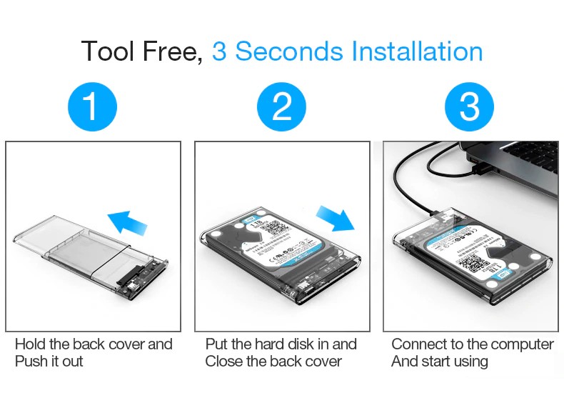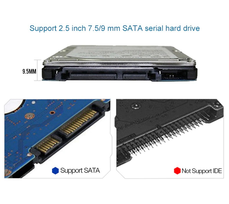 10. Admite todo tipo de discos duros mecánicos SATA de 2,5 "y unidades de estado sólido (SSD) 7/9.5mm
