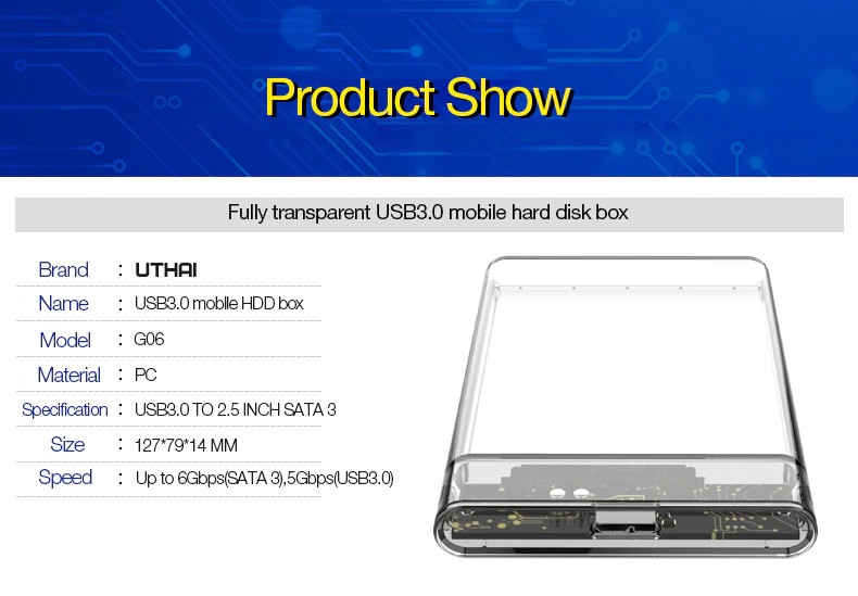 Carcasa De Disco Duro Uthai G06 Usb3.0/2, 0 Hdd, Puerto Serial De 2 5 Pulgadas Carcasa Disco Duro Sata Ssd, Compatible Con Funda Disco Duro Externo Móvil Transparente De 6Tb