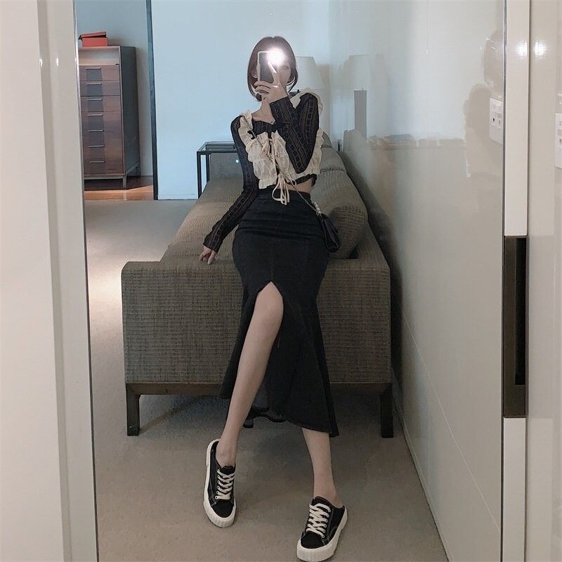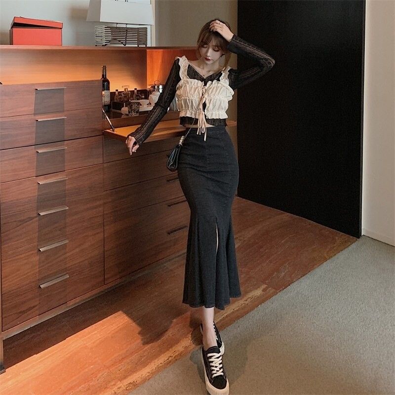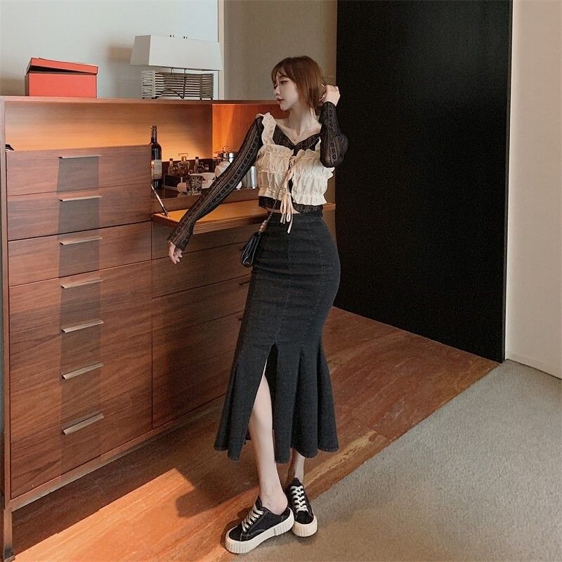 Faldas De Estilo Vintage Para Mujer, Faldas Vaqueras Ajustadas De Cintura Alta Con Abertura Sirena, A La Cadera Informales, De Talla Grande