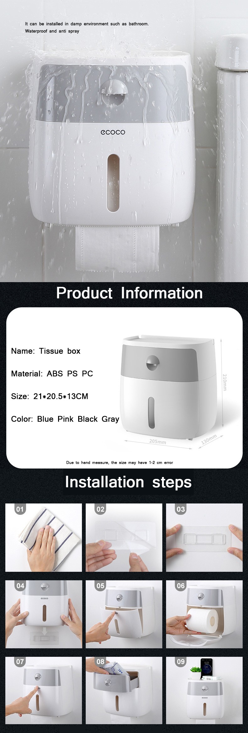 Soporte De Papel Higiénico Impermeable Para Uso En El Baño, Porta Toallas De Plástico Montado En La Pared, Con Caja De Almacenaje Para Estante Y Portarrollos Portátiles