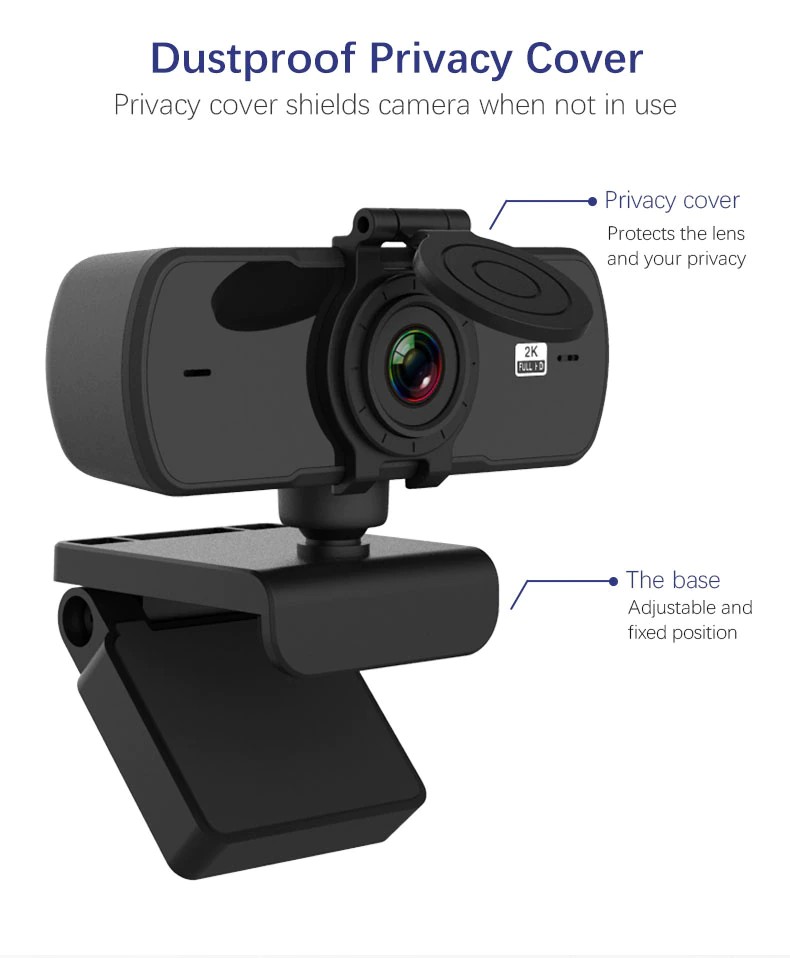 Webcam 2K Full HD 1440P cámara Web de enfoque automático con micrófono, enchufe USB, cámara Web para PC, ordenador, ordenador portátil, Mac, escritorio, YouTube, Skype