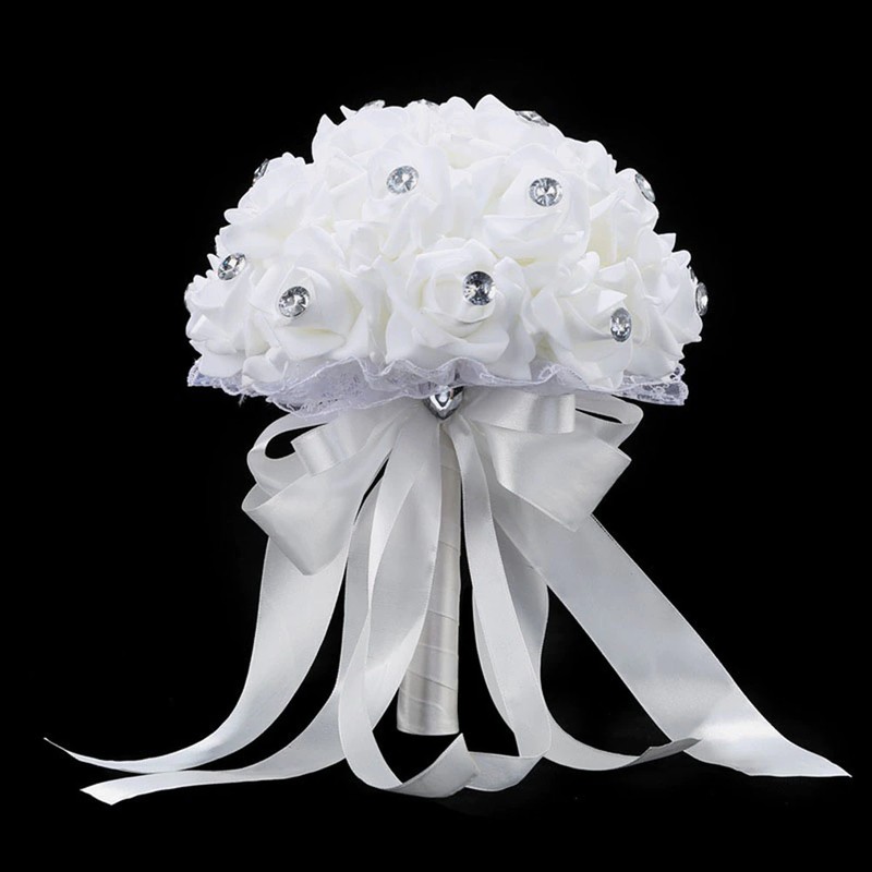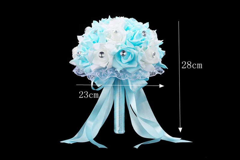 Ramo De Flores Artificiales Para Boda, Accesorios De Ramo Novia Azul Y Blanco, Hecho A Mano Rosa, Ramos De Novia