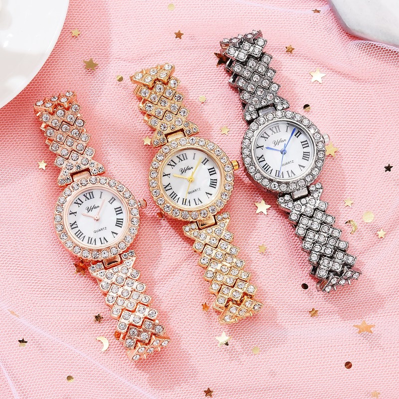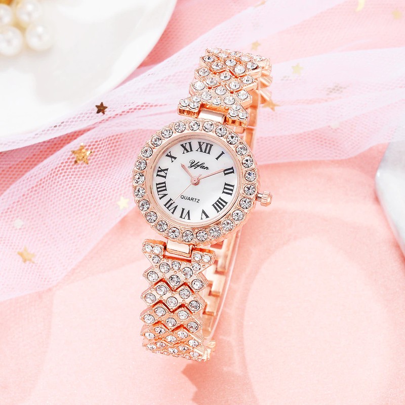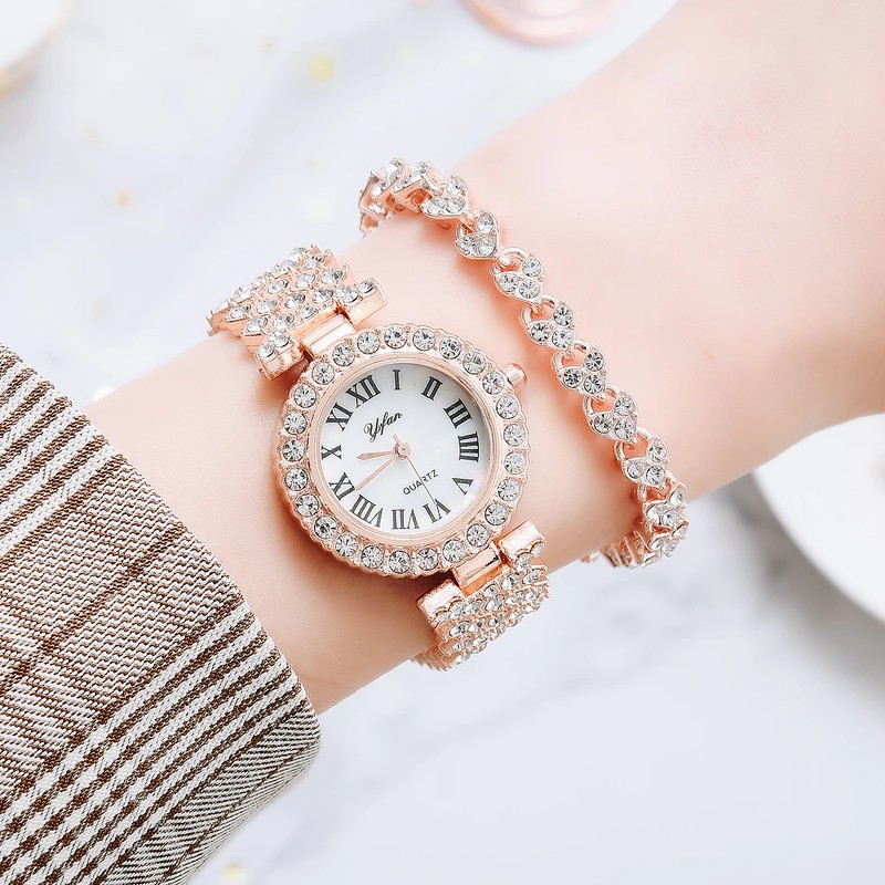 Reloj De Lujo De Oro Rosa Para Mujer, Pulsera Elegante Cuarzo Con Diamantes, Conjunto De 2 Uds.
