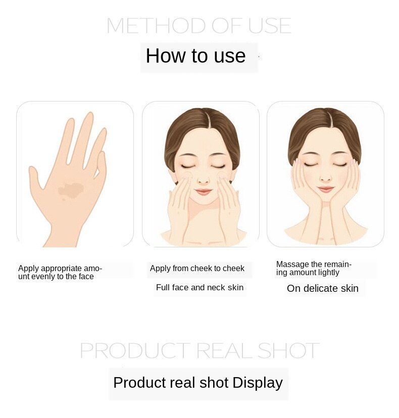 Paso 1: aplicar una cantidad apropiada uniformemente en la cara.
