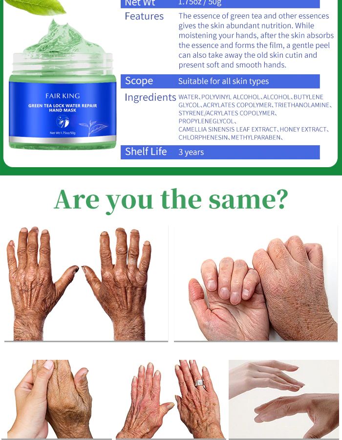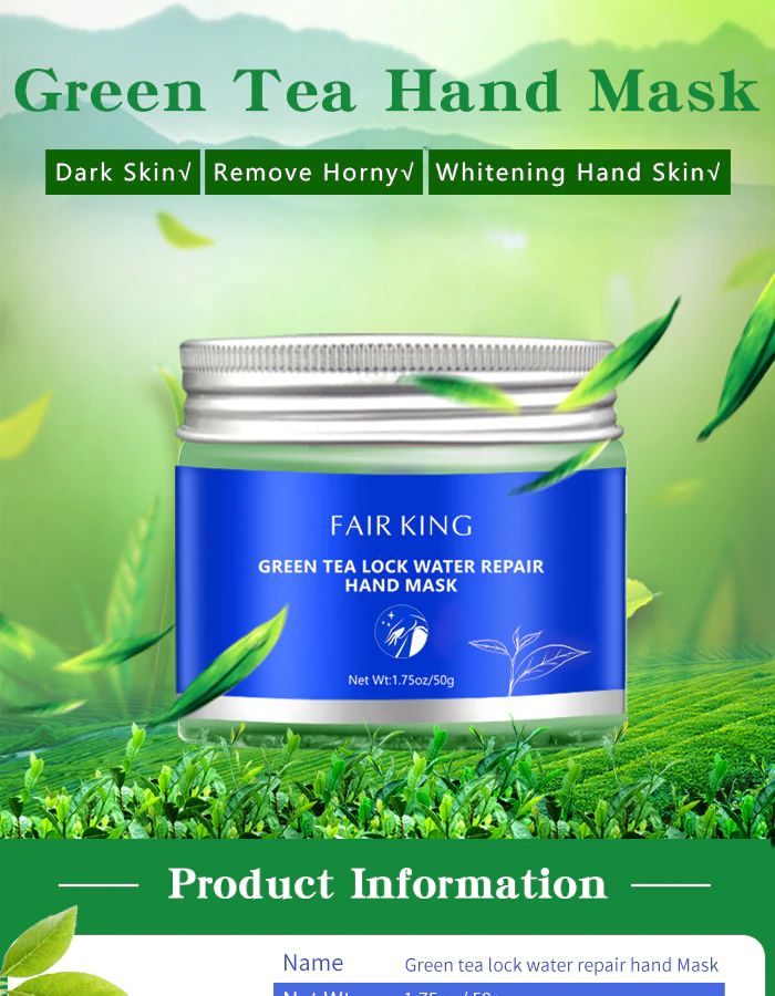 Fair King – Masque Blanchissant Pour Les Mains, Eau De Réparation De Thé Vert, Anti-Âge Et Anti-Rides Soins De La Peau Serrure Callosités 50 G ,