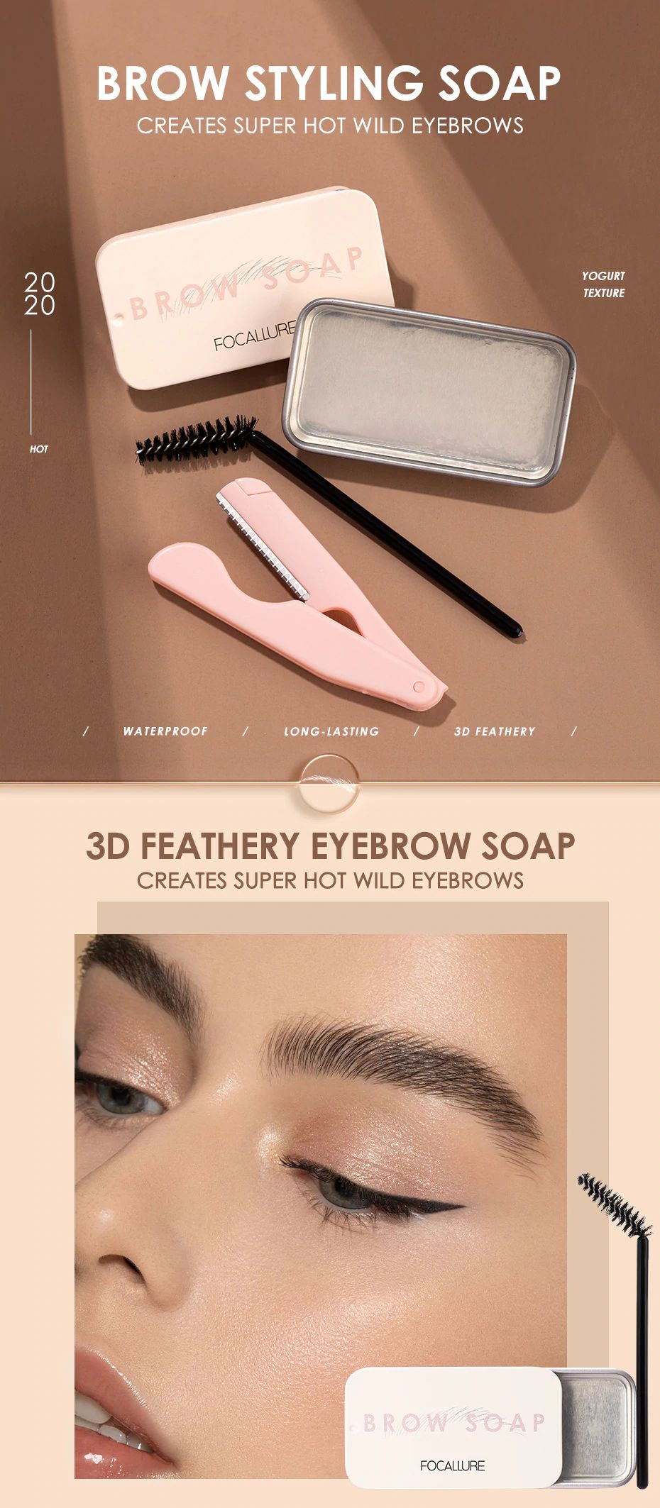 • Focallure-Gel Para Cejas, Cera Resistente Al Agua, Larga Duración 3D Pluma Jabón De Estilismo Para Cejas, productos cosméticos Para Mujeres