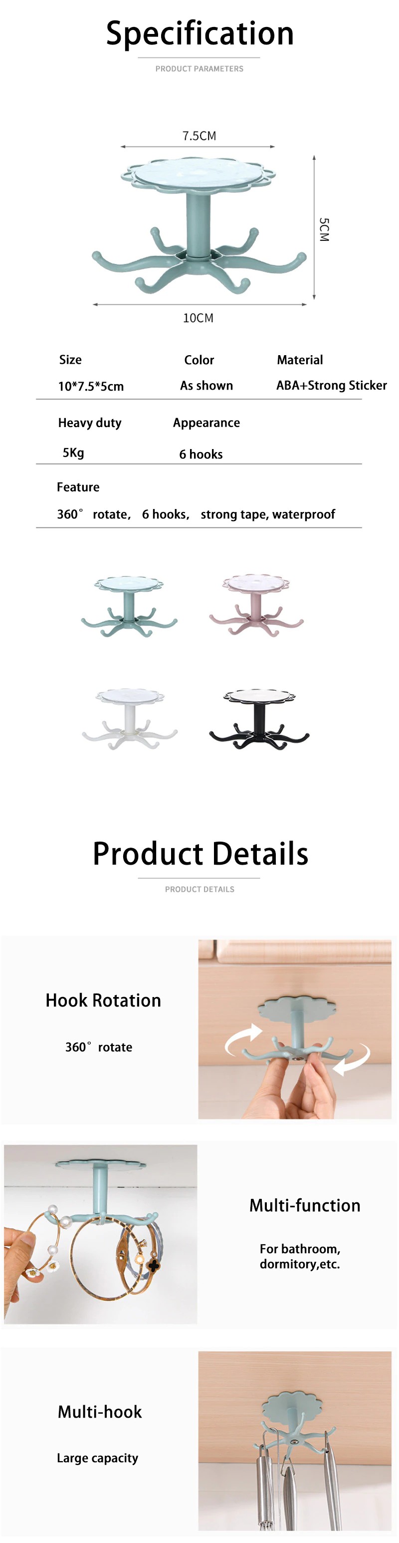 360 rotazione Girevole Ganci per la Cucina Organizzatore e di Stoccaggio Appeso Da Tavola Creativa Bagno Organizzatore Auto Adesivo Ganci