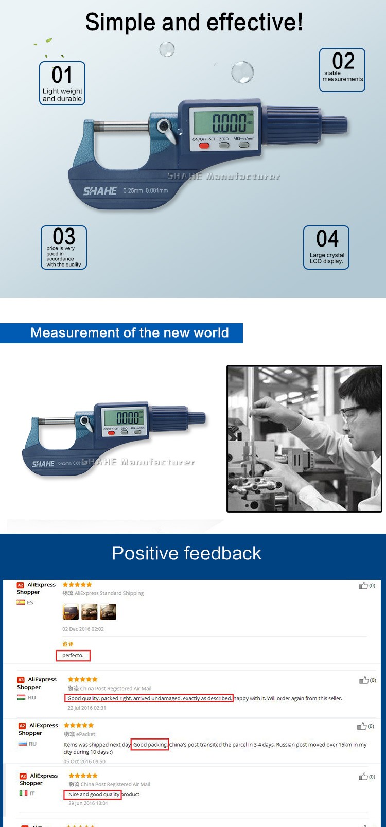 Shahe – Micromètre Externe Numérique, Jauge Électronique, Calibre 25/25Mm Calibre Outils Numériques Étrier, 0-50/50-75/100-0.001Mm