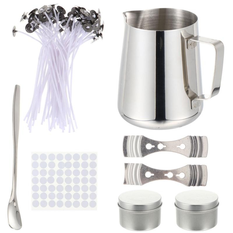 Kit De Fabrication De Bougies Pot Verseur, Mèches Autocollantes, Fixateur Ensemble Outils Artisanaux Avec Support En Coton Fait À La Main, 1 Pièce