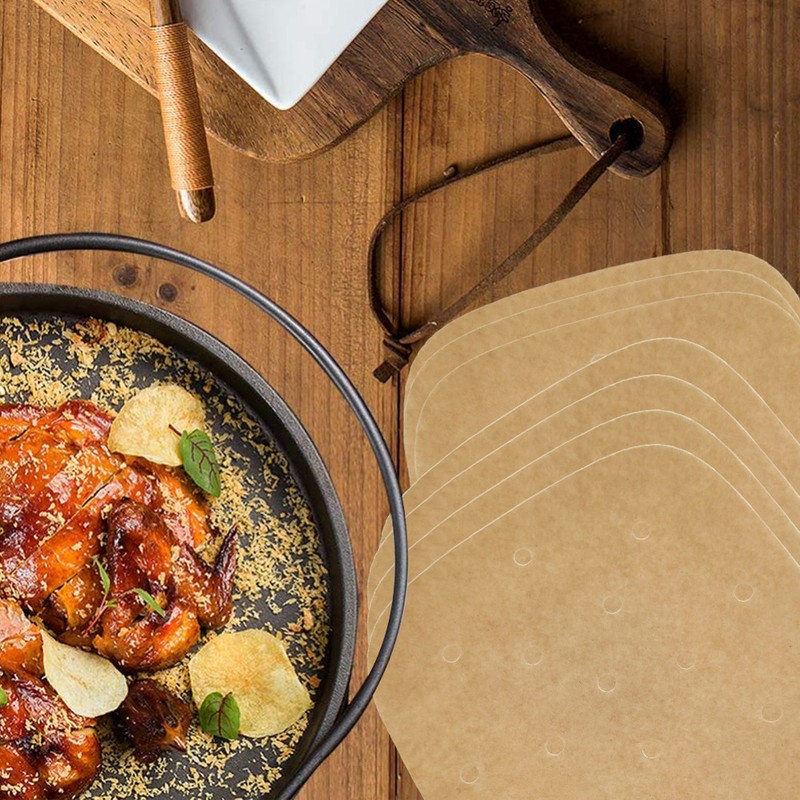 Assurer la circulation de l'air chaud: le papier parchemin est conçu avec des trous suffisants pour améliorer la circulation de l'équipe dans la friteuse à air ou le cuiseur vapeur, vous permettant de déguster des aliments plus délicieux.