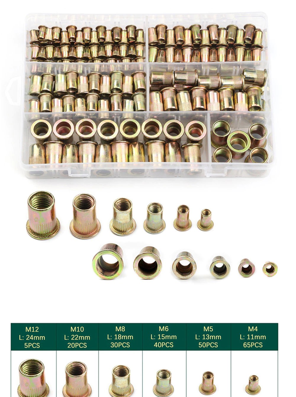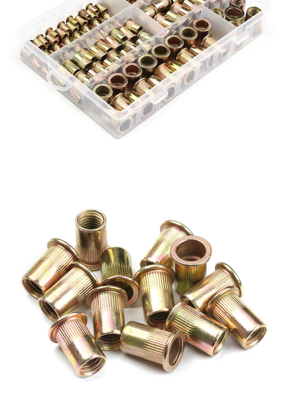 Écrous De Rivet En Acier Au Carbone M4 M5 M6 M8 M10 M12, Boîte De 210/165/100 Pièces, Écrous De Rivet À Tête Plate, Multi-Tailles