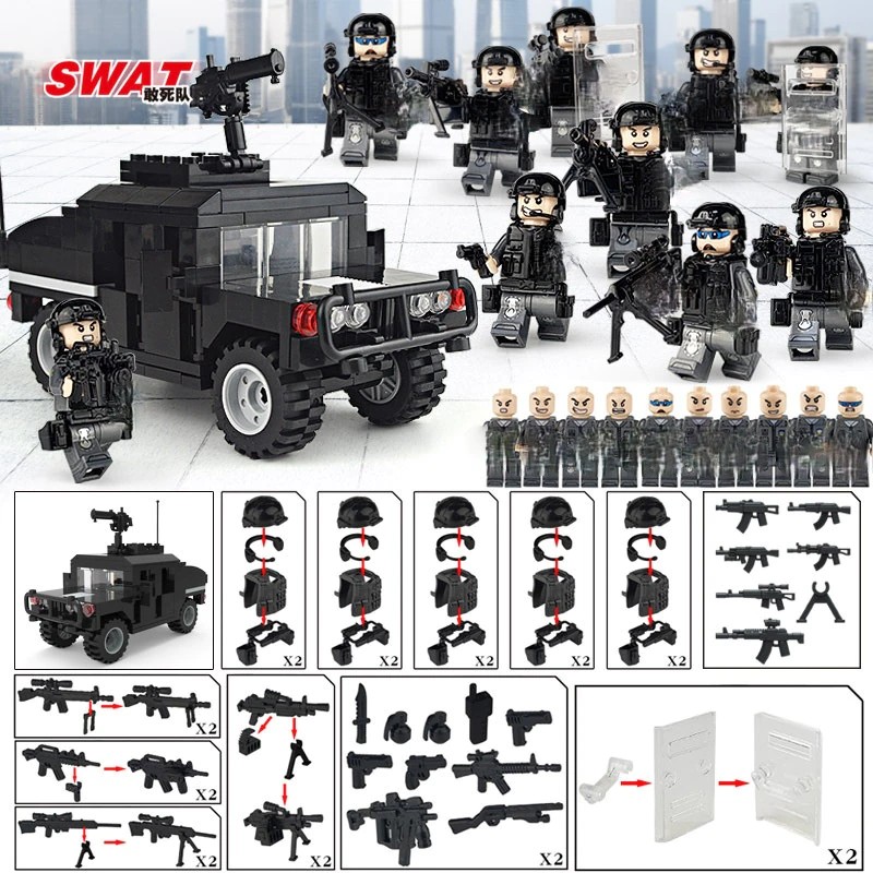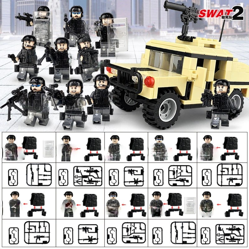Blocs de construction assemblés pour les Forces spéciales militaires, soldats, briques, figurines, armes, compatibles avec les lego