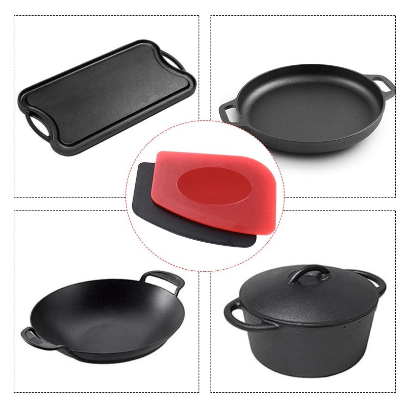 Différents outils de grattoir de casserole répondent à différentes exigences: 2 paquets de grattoirs de gril ont deux jeux de dents conçus pour s'adapter à tout poêle de gril de lodge moderne, bords droits et courbes pour les zones plates et incurvées; 2 paquets de grattoirs de casserole ont 4 coins de formes différentes pour nettoyer toute poêle de forme, assiettes, pots, également gomme idéale, dissolvant d'autocollants.