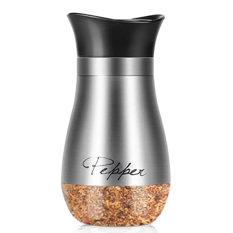 Made from high-quality stainless steel with a glass bottom that helps to verify when shakers are getting low, avoiding the hassle of constantly removing the cap.