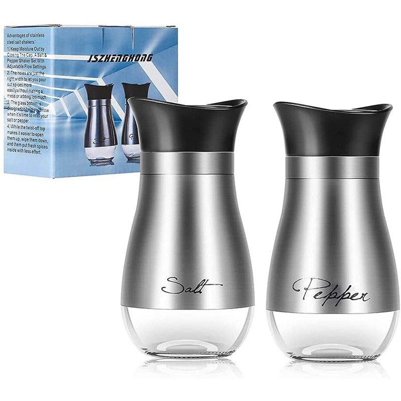 2Pcs/Set Stainless Steel Spice Dispenser Spice Shaker Multi Function Cooking Bbq Pepper Salt Jar Seasoning Jar Tools