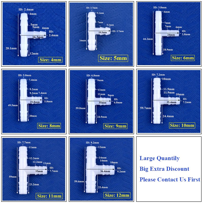 5 ~ 200pcs 4 ~ 13mm blanc PE connecteur en t adaptateur de réservoir d'aquarium pompe à Air tuyau pagode Joints de jardin Irrigation connecteur de tuyau d'eau