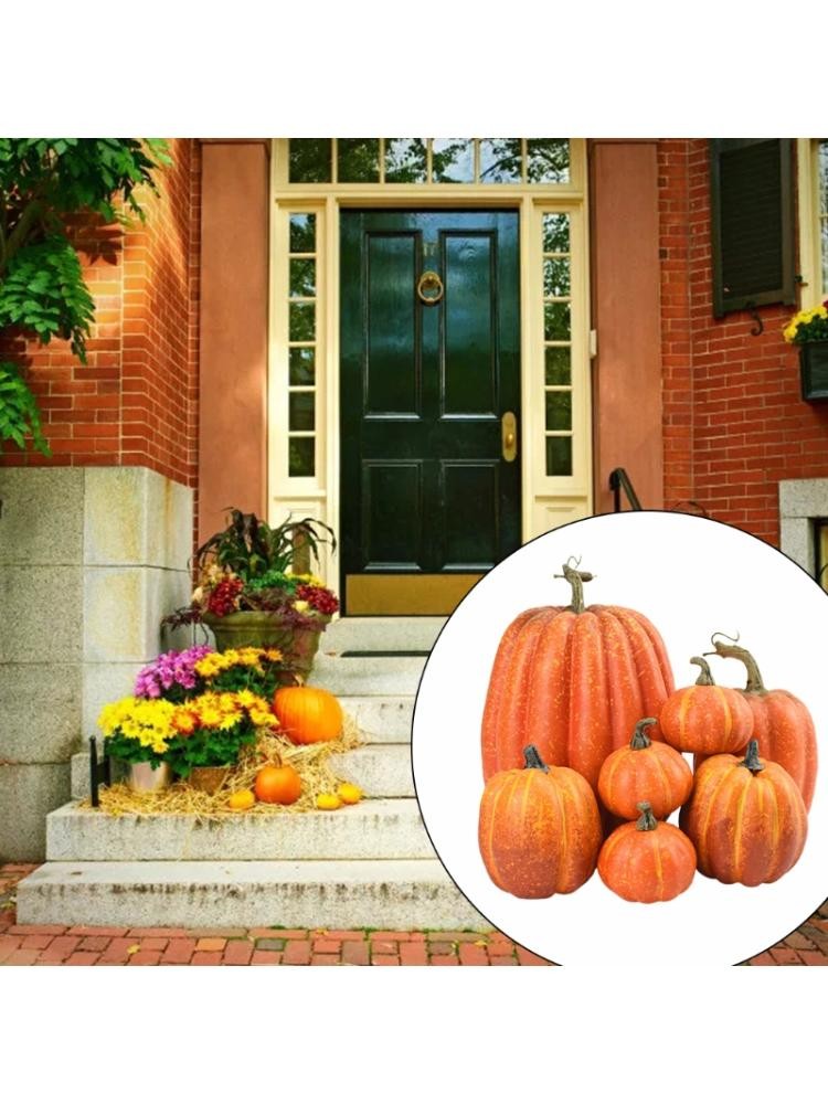 Assortiment De Fausses Citrouilles Artificielles Pour Halloween, Décoration De La Maison Pour Fête Thanksgiving, Set De 7 Pièces