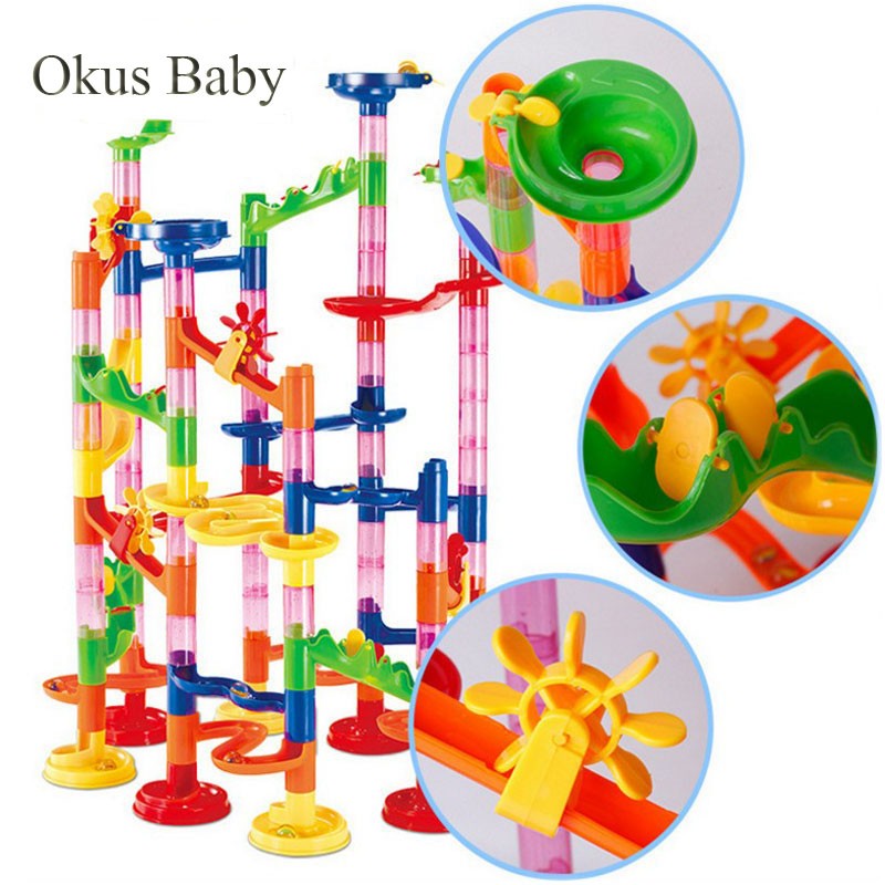 Ensemble de 29/80/105/133 pièces de blocs de Construction de piste labyrinthe de course de marbre à monter soi-même, jouets de balle pour enfants