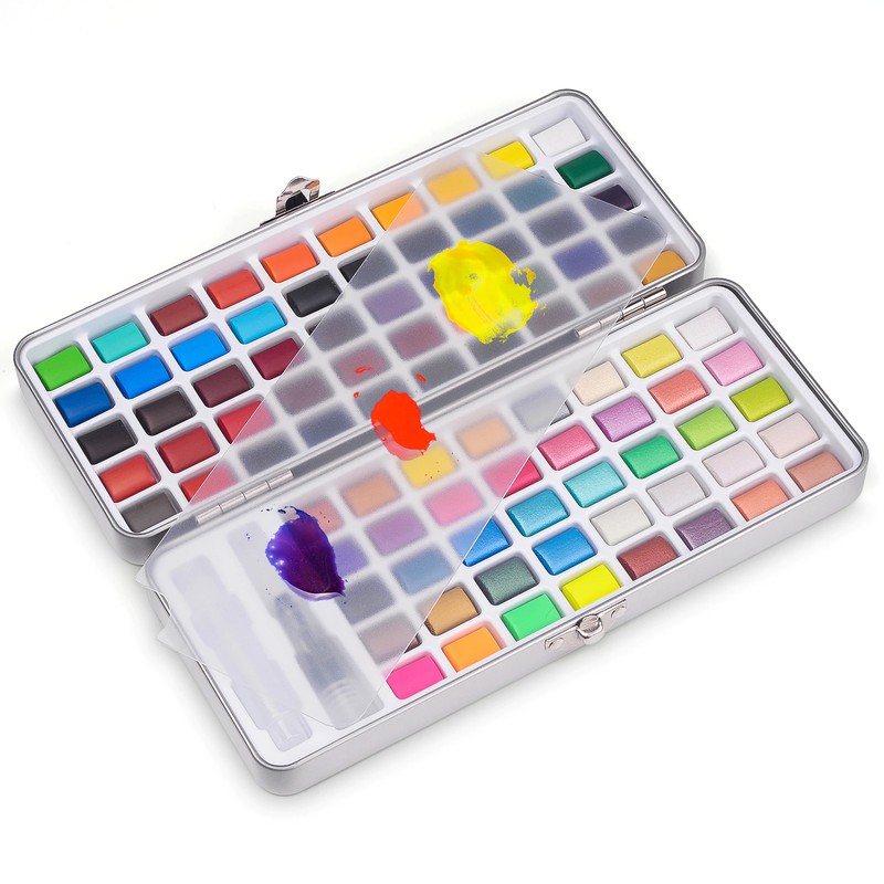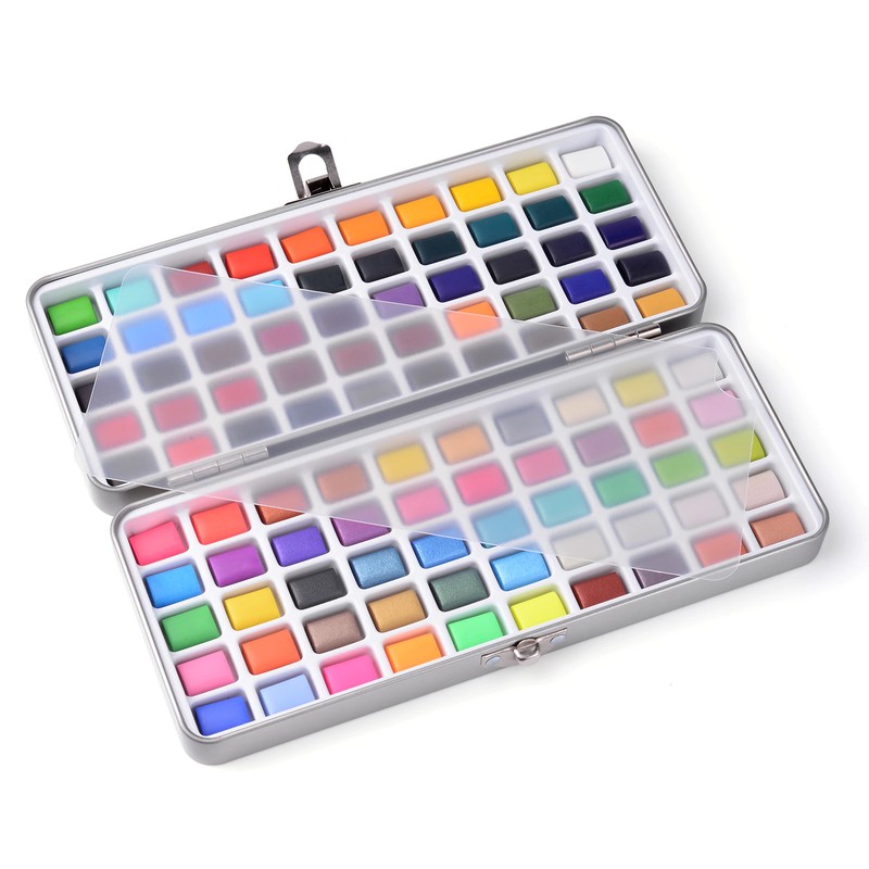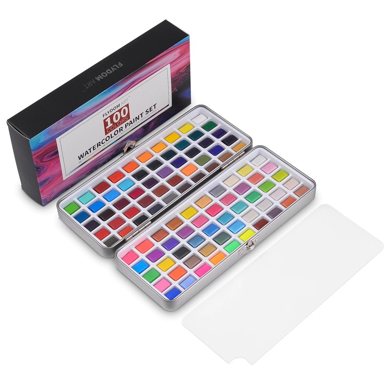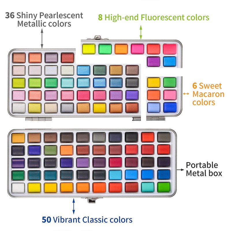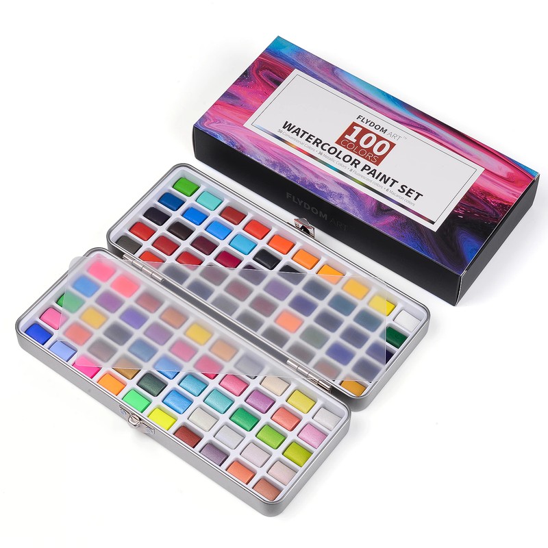 Nous avons changé certains de nos designs et ajouté des macarons et des couleurs fluorescentes plus haut de gamme, nous avons donc cet ensemble incroyable de peintures aquarelles solides de 100 couleurs.
