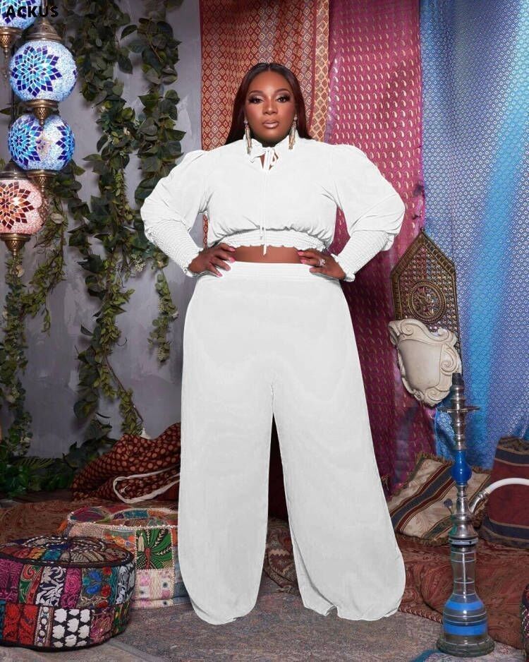 Ackus – Ensemble Deux Pièces Pour Femme, Haut Court Et Pantalon À Jambes Larges, Couleur Unie Grande Taille Tenue Décontractée Survêtement, Automne Le plus récent