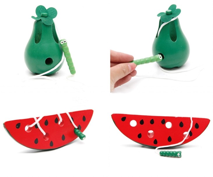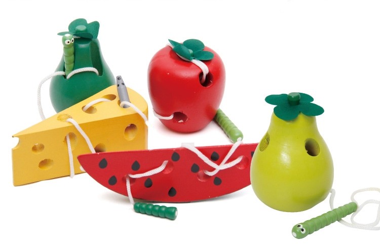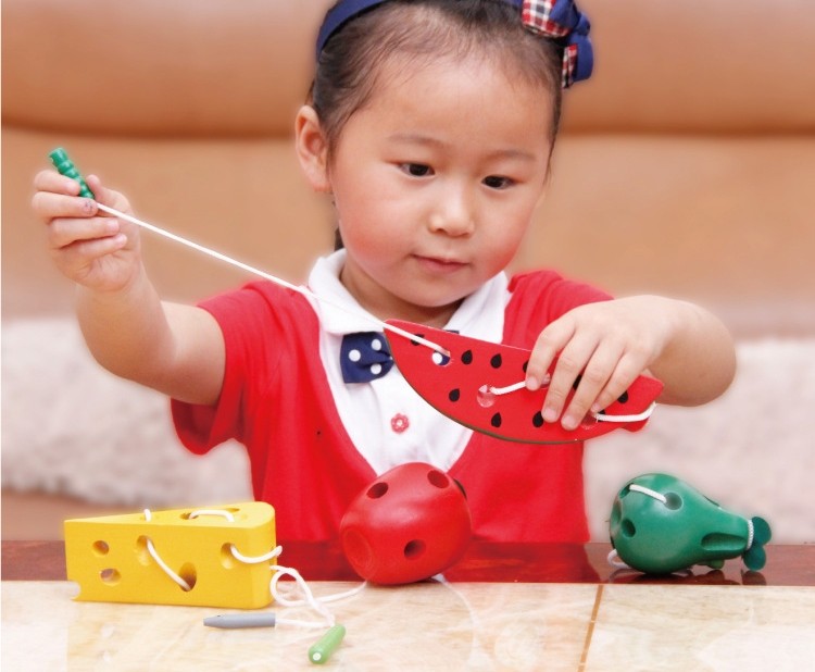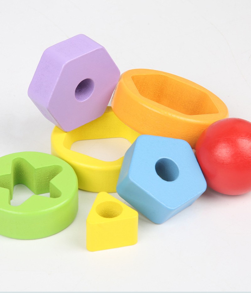 Jouets en bois Montessori: Fil de perles de cercles en bois