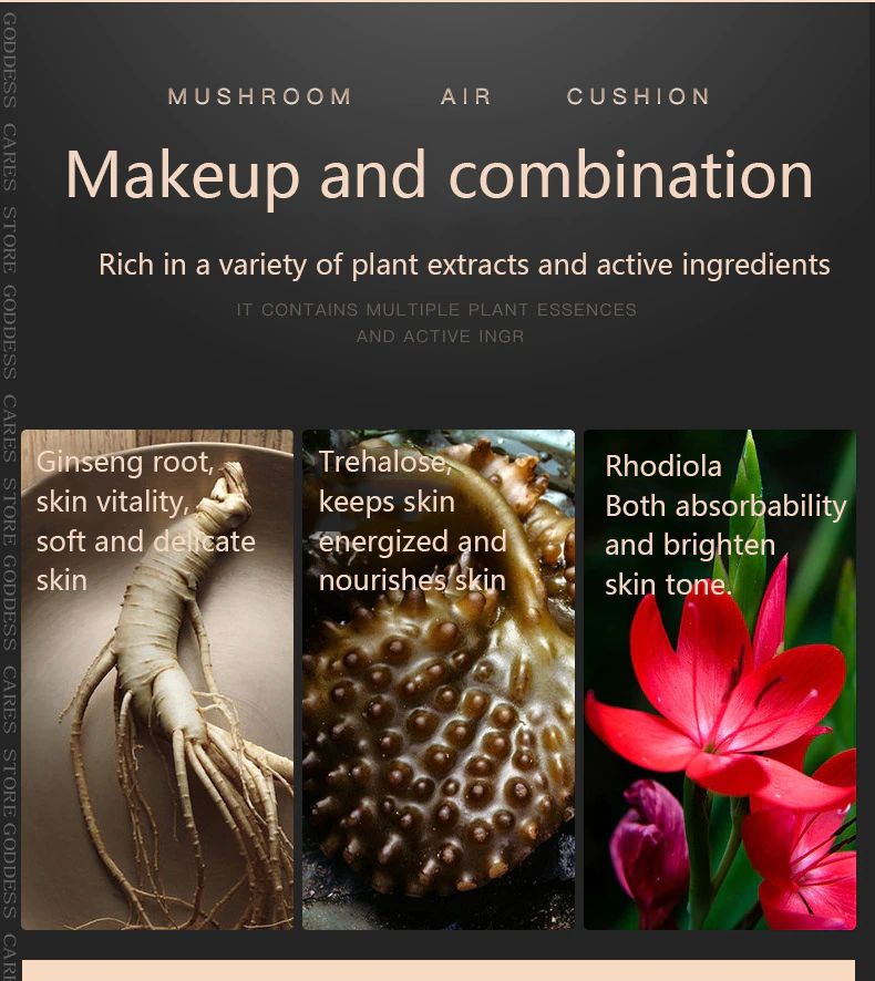 Bb – Fond De Teint À Coussin D'Air, Tête De Champignon, Correcteur Cc Crème Maquillage Blanchissant Cosmétique Éclaircissant, Teint De Base Pour Le Visage