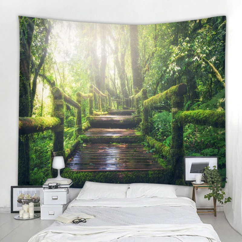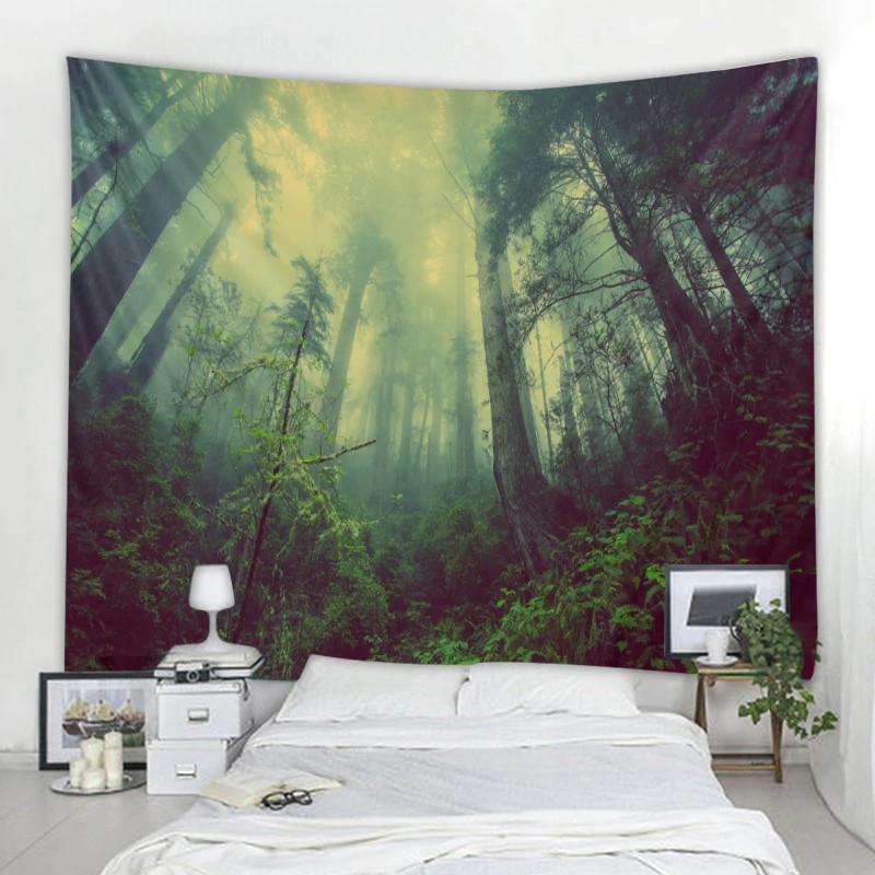 Grande Tenture Murale Imprimée Forêt, Belle Tapisserie De La Nature, Suspension Hippie Bohème Mandala, Décoration Artistique