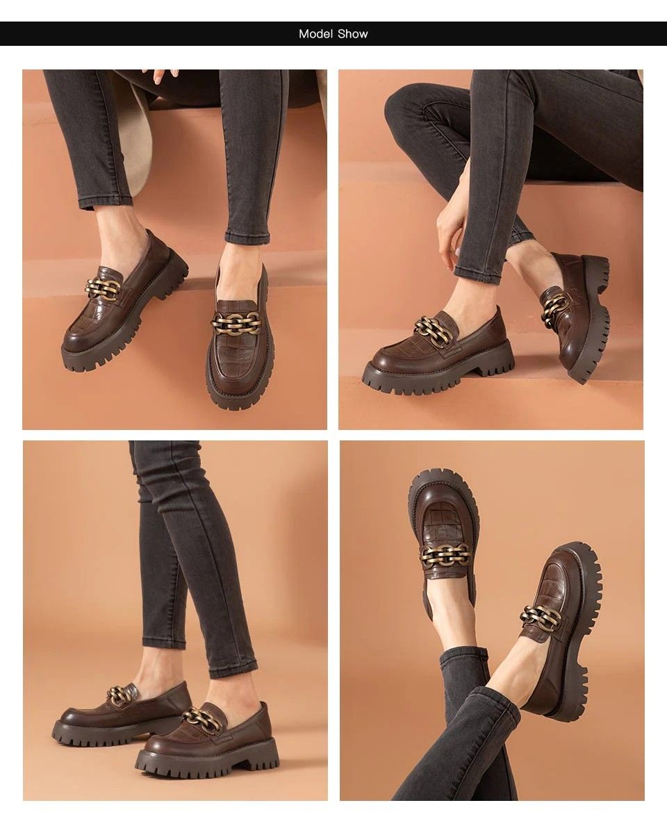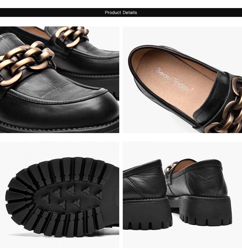 Beautoday – Mocassins Épais En Cuir De Vache Véritable Pour Femmes, Chaussures À Plateforme, Bout Rond Chaîne En Métal Faites À La Principale, 27748