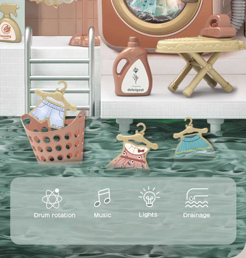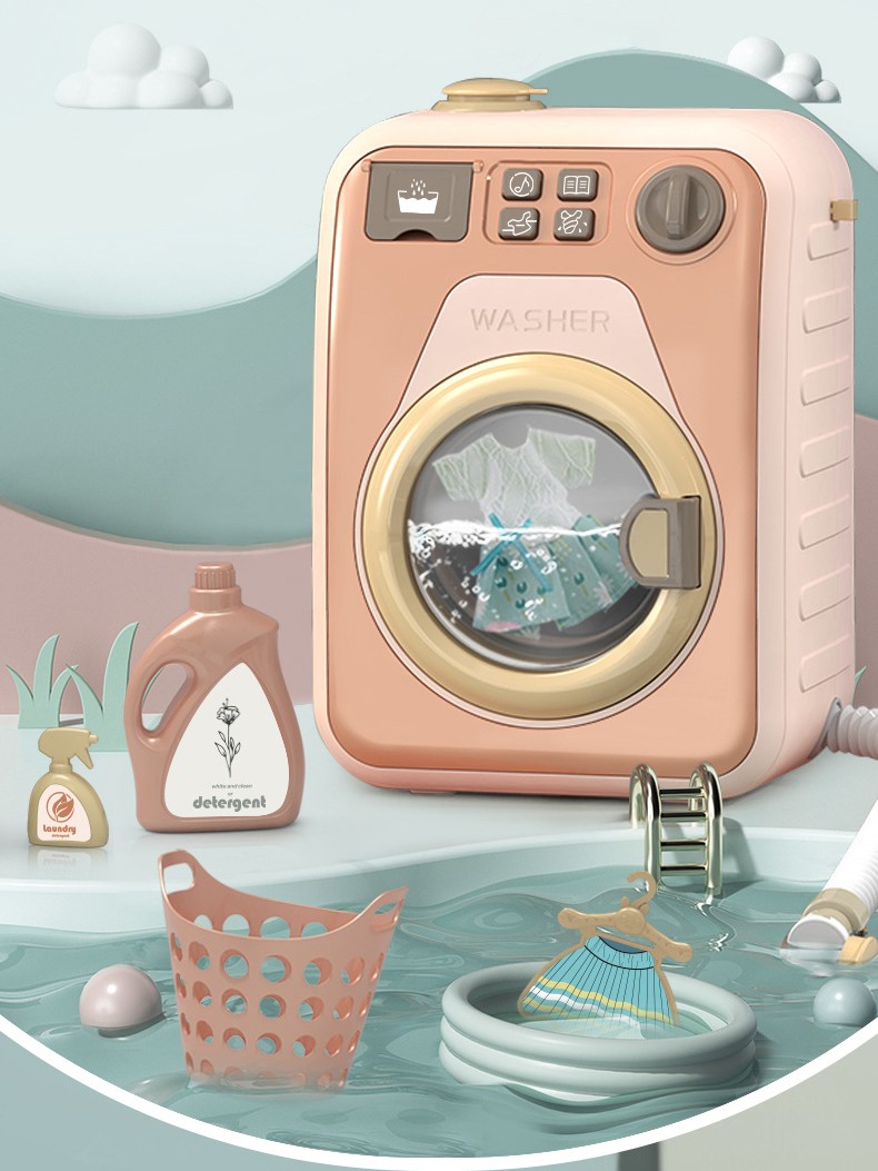 Machine À Laver Rotative À Tambour Électrique Pour Enfants, Jouet Maison De Jeu Cuisine Cuiseur À Riz Poupée De Cuisine, Ensemble De Jouets Cadeau Pour Filles