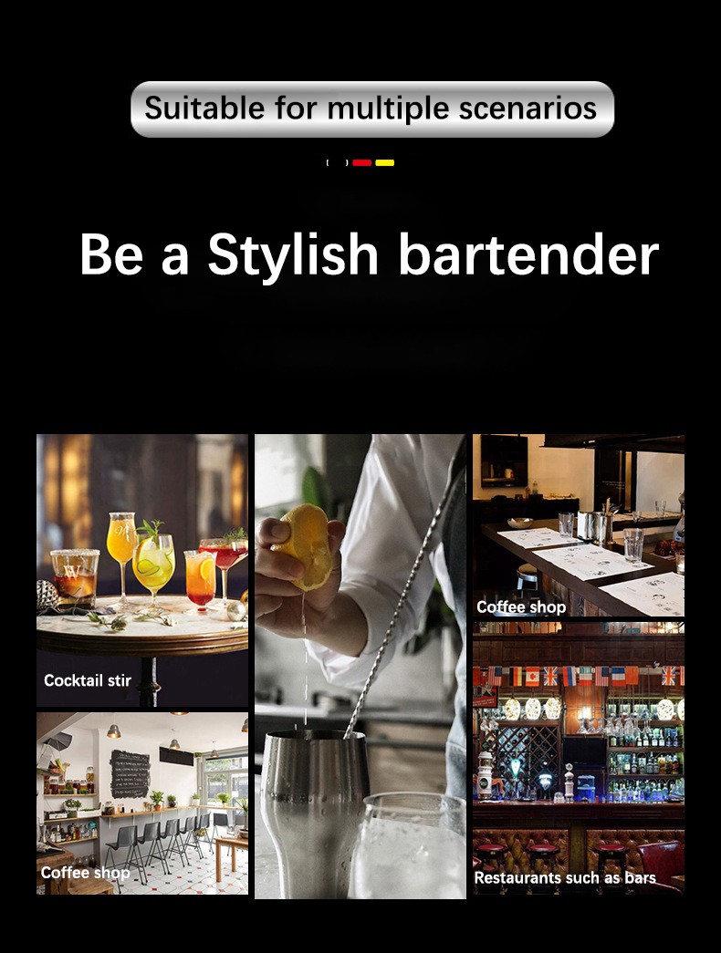 Il est utilisé pour remuer et mélanger des cocktails. C'est l'un des outils de barman couramment utilisés dans les bars. Il est utilisé pour remuer le thé au lait, ou le sucre décoratif est accroché au mur de la tasse, ce qui donne un double plaisir en vision et en grains de goût.