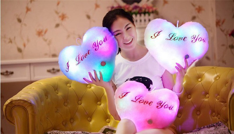 Coussin en peluche lumineux et coloré en forme de cœur pour fille, oreiller, jouet, poupée, créatif, brillant, amour, lumière LED, cadeau pour enfants, noël anniversaire,