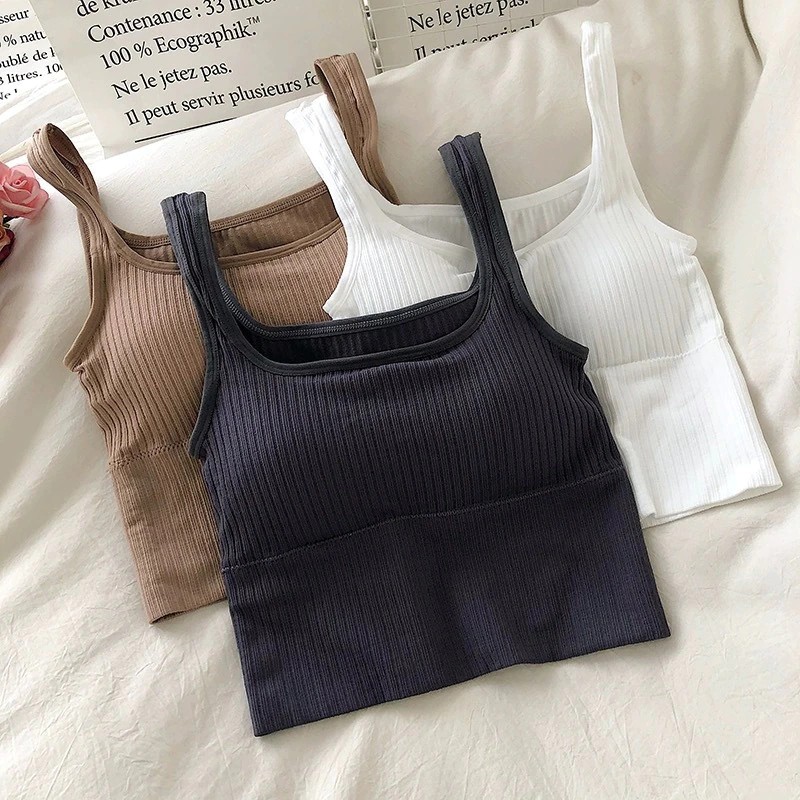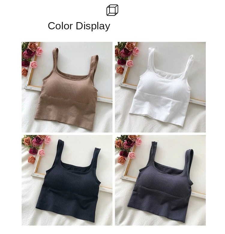 Haut Court Sans Couture Pour Femmes, Sous-Vêtement Sans Fil En Forme De U, Camisole Solide À Larges Bretelles Rayées Monochromatique, Nouvelle Collection