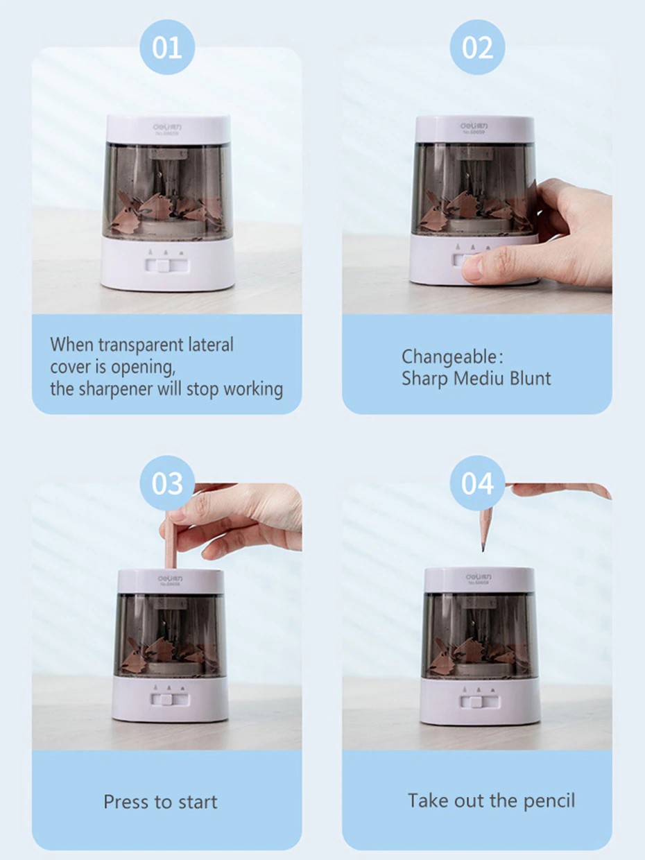Deli – Taille-Crayon Électrique Automatique, 3 Modes Réglables, Papeterie Pour La Maison, Le Bureau Et L'École