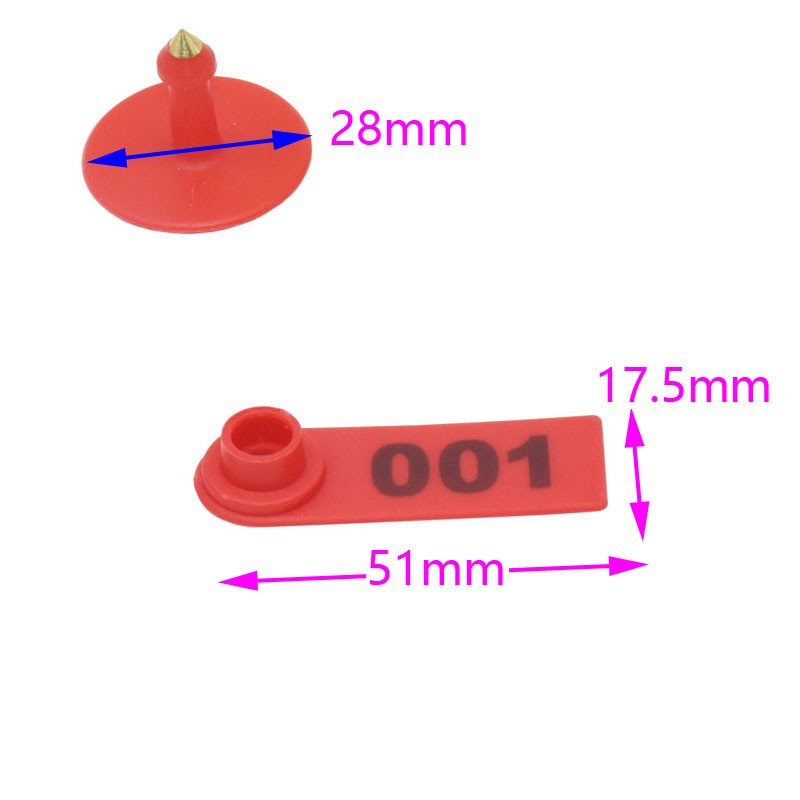 Caractéristique 1. L'emballage comprend 1: 100 étiquettes d'oreille rouges (numéro: 001-100) Emballage 2: 100 étiquettes d'oreille de mouton, 1 pince d'étiquette d'oreille, 2 clous d'étiquette d'oreille, (numéro: 001-100) Si vous avez besoin de personnaliser d'autres numéros: vous pouvez nous écrire, (nous pouvons personnaliser le numéro: 001-10000) Le kit d'étiquette d'oreille est plus pratique et fait gagner du temps. 2. Étiquette d'oreille de mouton, impression laser, claire et facile à lire, pas facile à décolorer. 3. Matériaux de haute qualité, résistants au froid, à la chaleur, antigel, durables et flexibles. 4. Pince pour étiquette d'oreille: le verrouillage automatique est facile à utiliser, économique, sûr et soulage la douleur. Les pinces auriculaires pour animaux conviennent aux cochons, aux vaches, aux vaches, aux chèvres, aux lapins, etc. 5. Poignée confortable: selon la conception de la paume humaine, elle est plus confortable.