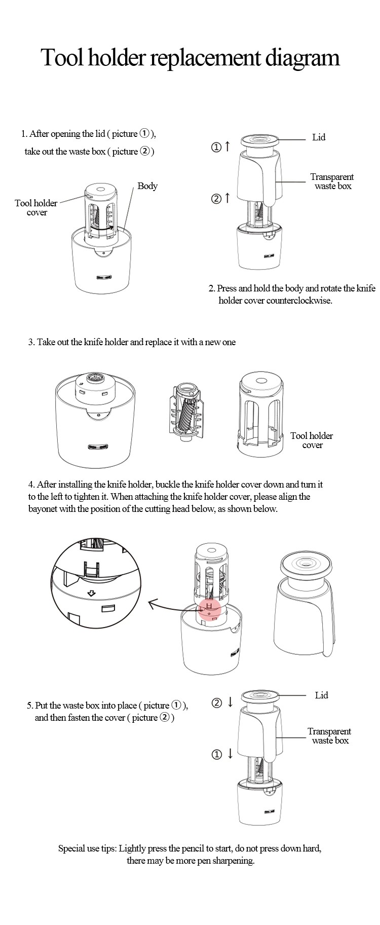 4. Modèle de lame: 5058, lame en spirale puissante, n'a besoin que de 2-3 secondes pour 1 crayon.