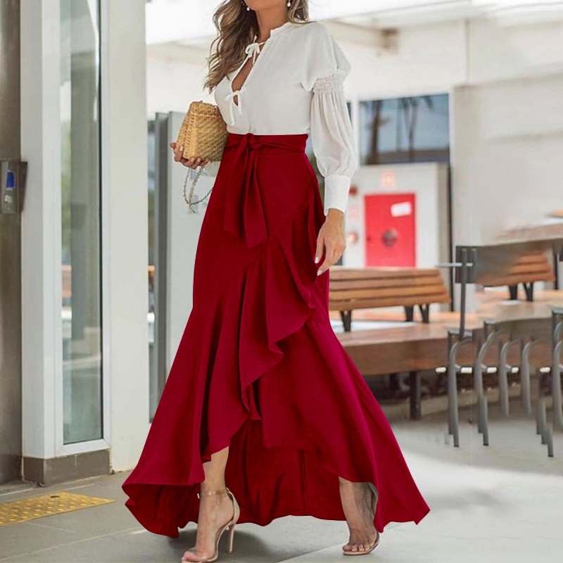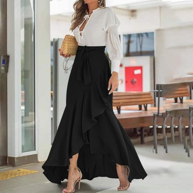 Longue Jupe Élégante Pour Femmes, Automne, Taille Haute Ceinture En File d'attente De Poisson Ample Décontractée Fête, Maxi