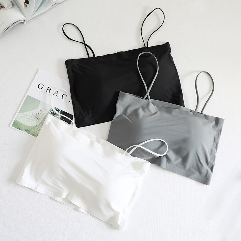 Soutien-Gorge Push Up Sexy Pour Femmes, Lingerie En Soie Glacée Sans Couture, Haut Tubulaire Blanc Bralette Débardeur, Été Dernier