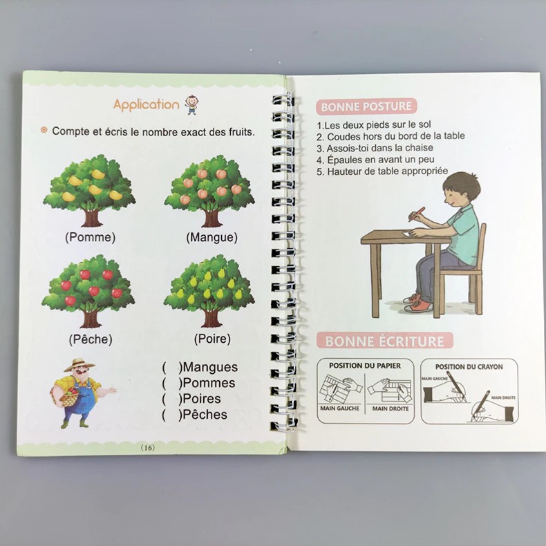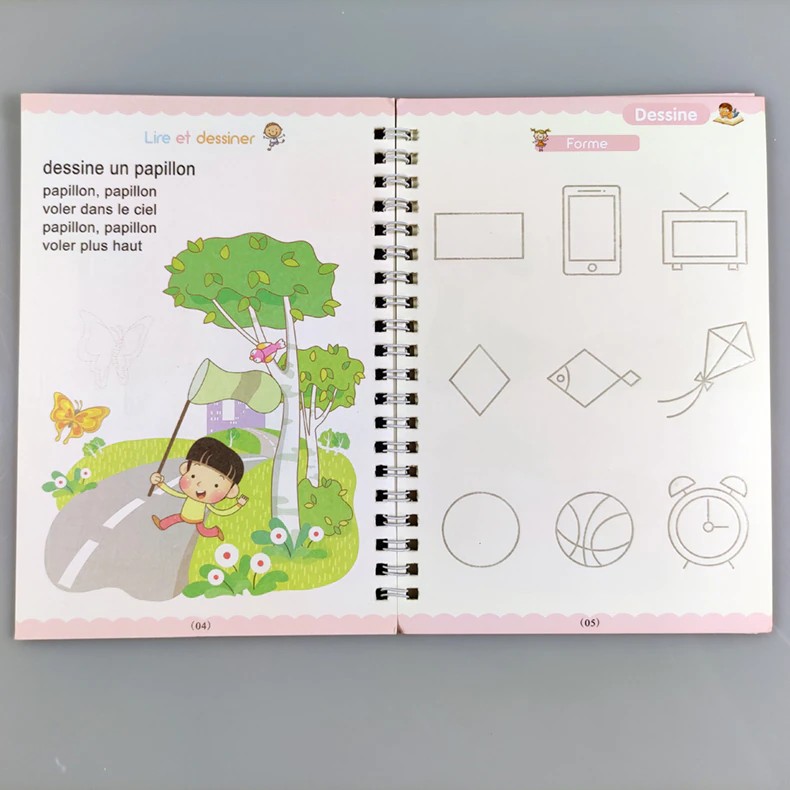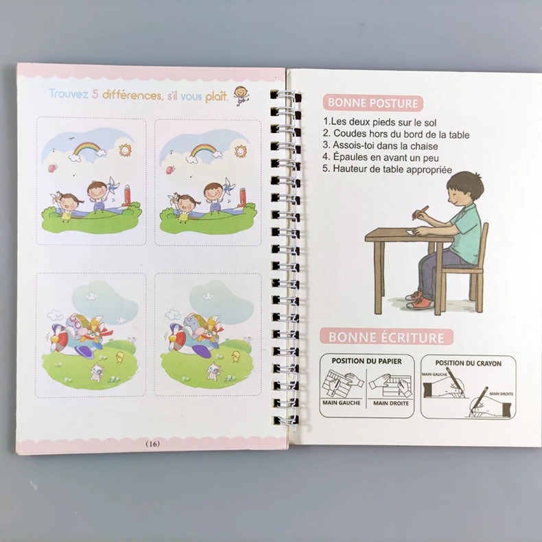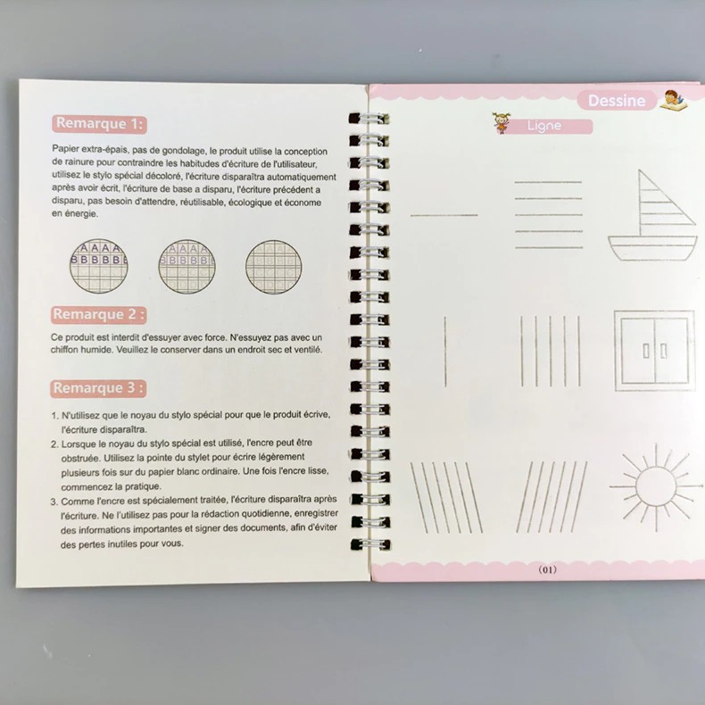 Cahier Rainuré D'Écriture Magique Français En 3D Pour Enfant, Livre D'Apprentissage Pour Apprendre Les Nombres Et Les Lettres, Idéal Pour La Pratique De L'Écriture De La Calligraphie, Parfait Comme Cadeau