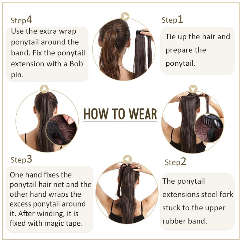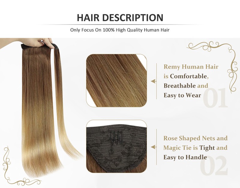1. Nom du produit: 100% Extensions de queue de cheval de cheveux humains Remy