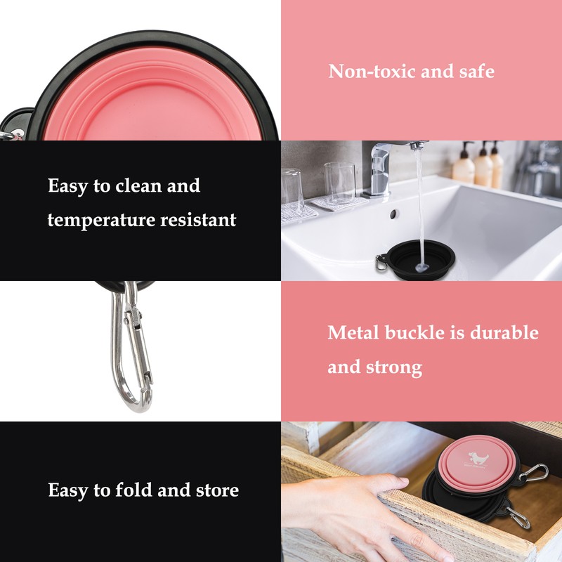 Bol pliable en silicone avec clip, facile à accrocher au sac, le meilleur compagnon pour les chiens en voyage ou en marchant