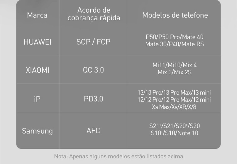 Fonction: Prise en charge de l'AFC FCP SCP QC 3.0 Charge rapide