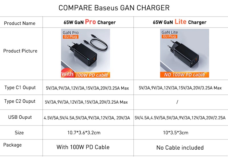 Type: Basus UE Fiche 65W Gan Charger, Baseus US Plug 65W Gan Changrer