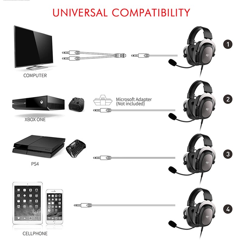 Havit – Casque Filaire De Gamer, Pc, Ps4 Son Surround Et Hd Microphone De Jeu Ordinateur Portable Tablette H2002D, 3.5Mm