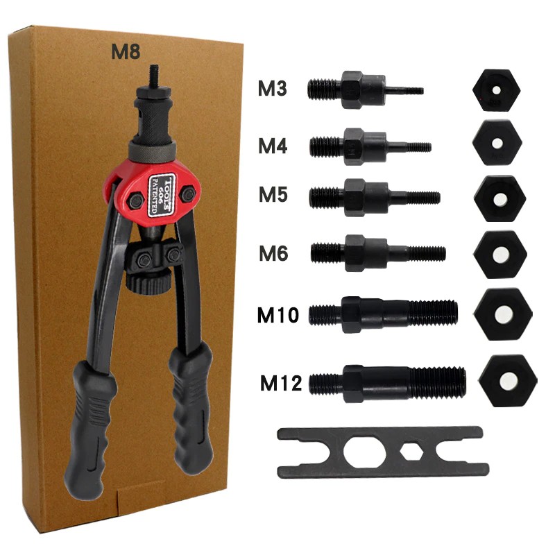 Hifeson – Pince À Riveter Manuelle Avec Embout Fileté, Pistolet À Rivet Avec Écrou, Outil À Main Pour La Pose Des Tailles M3 M4 M5 M6 M8 M10 M12 Appareil De Bricolage, 70/95/300 Pièces