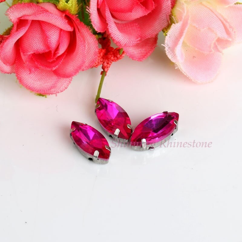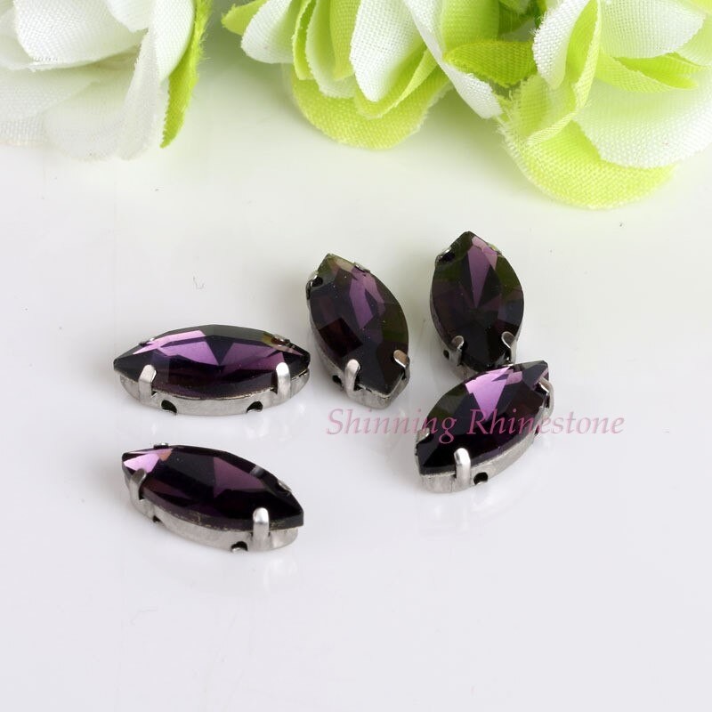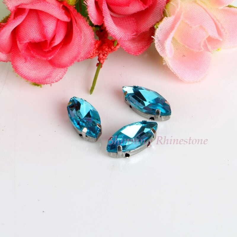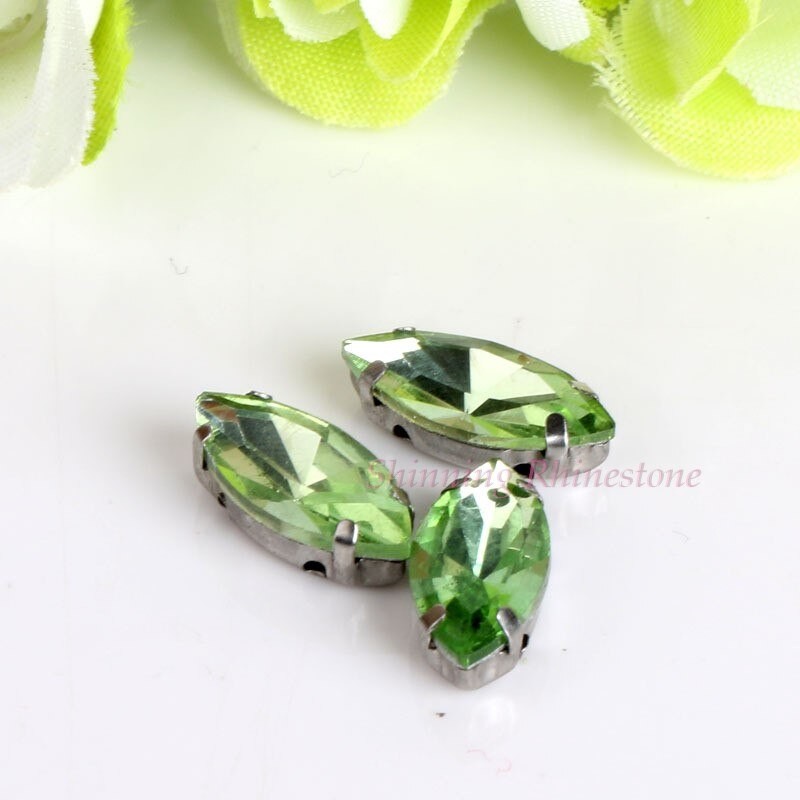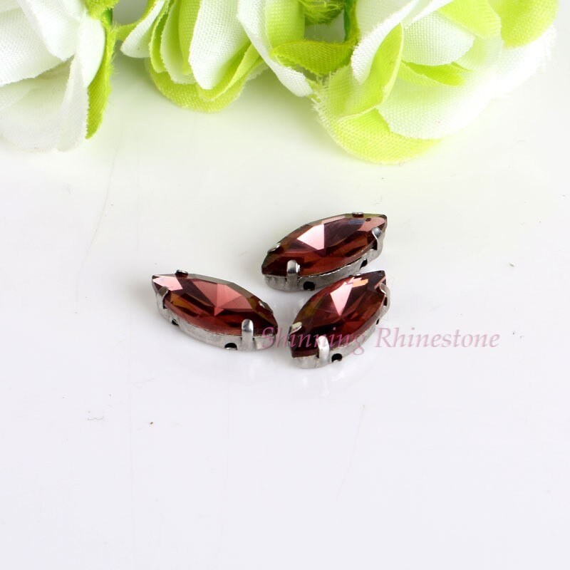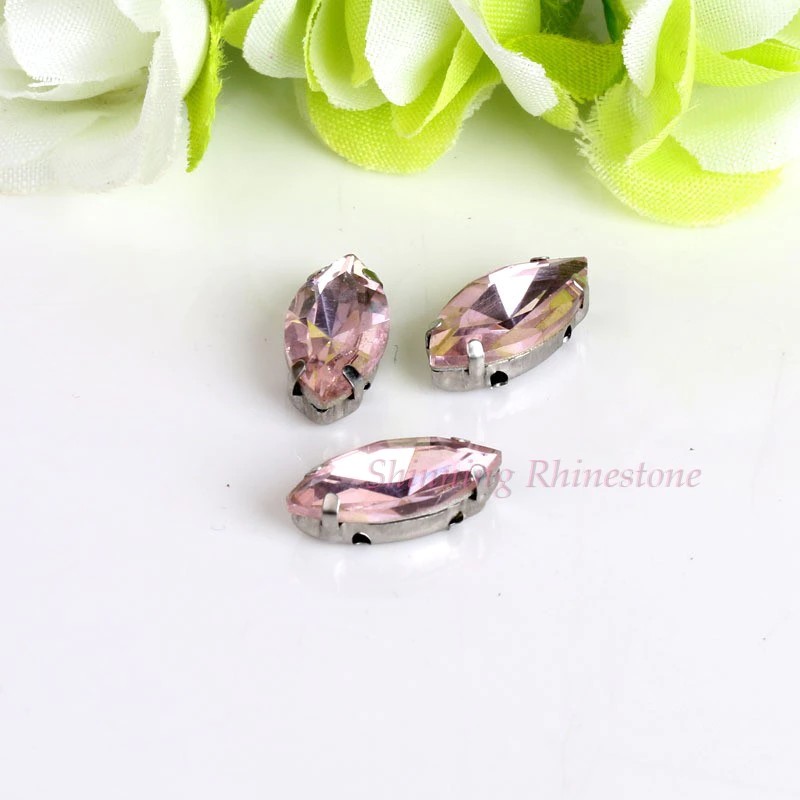 Strass En Verre En Forme D'Oeil De Cheval/Feuille Avec Griffe Cousue Sur La Pierre De Cristal, Strass Diamant Boucle De Base En Métal Pour Vêtements