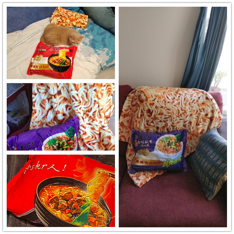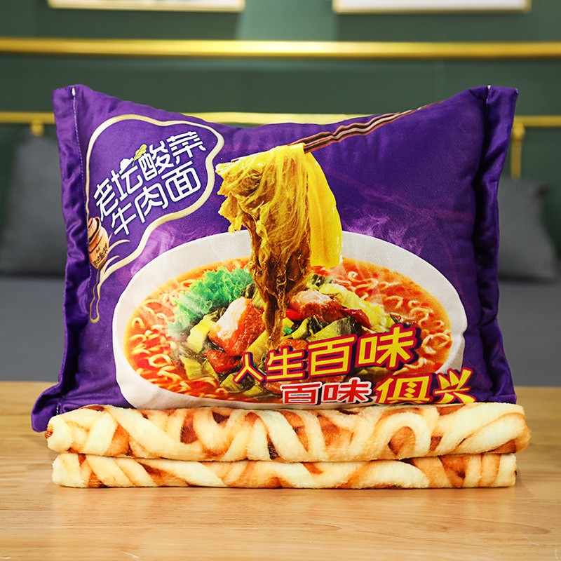 Couverture Kawaii Simulation de nouilles instantanées oreiller en peluche avec couverture en peluche de bœuf frit nouilles cadeaux oreiller en peluche nourriture en peluche jouet oreiller de nouilles